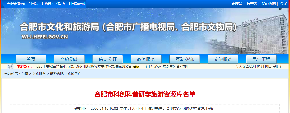 来源:合肥市文化和旅游局 发表时间:2026-01-16 浏览次数:1